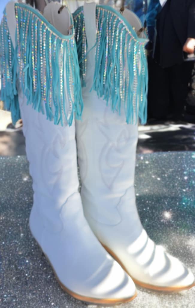 Inspired by festival sunsets and Sand in My Boots vibes, Neon Ocean brings the bold with turquoise fringe and high-shine rhinestone sparkle. Whether you're dancing barefoot in the sand or boot-stomping at a show, this pair brings the glow.